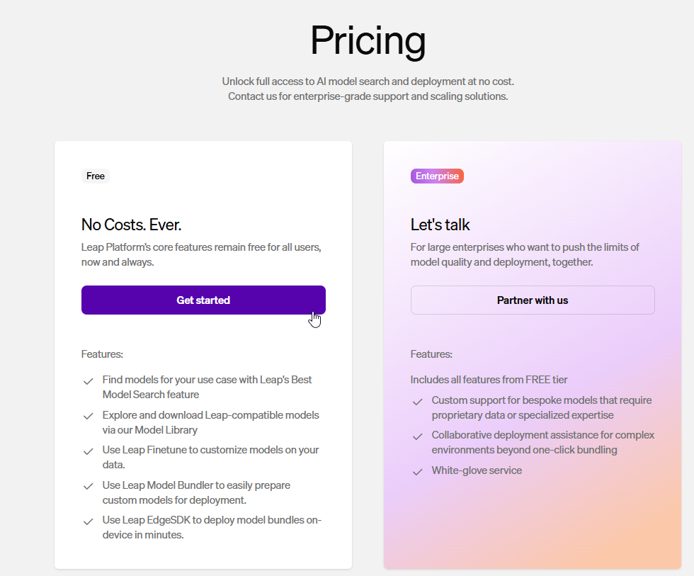 LEAP(Liquid Edge AI Platform)는 엔터프라이즈급 에지 네이티브 AI 배포를 위한 핵심 플랫폼으로 OS에 독립적이며, 모델에도 독립적인 개발자 중심의 플랫폼으로, 모델의 배포, 파인튜닝, 실행을 온프레미스나 엣지 환경에서 직접 수행할 수 있게 합니다.