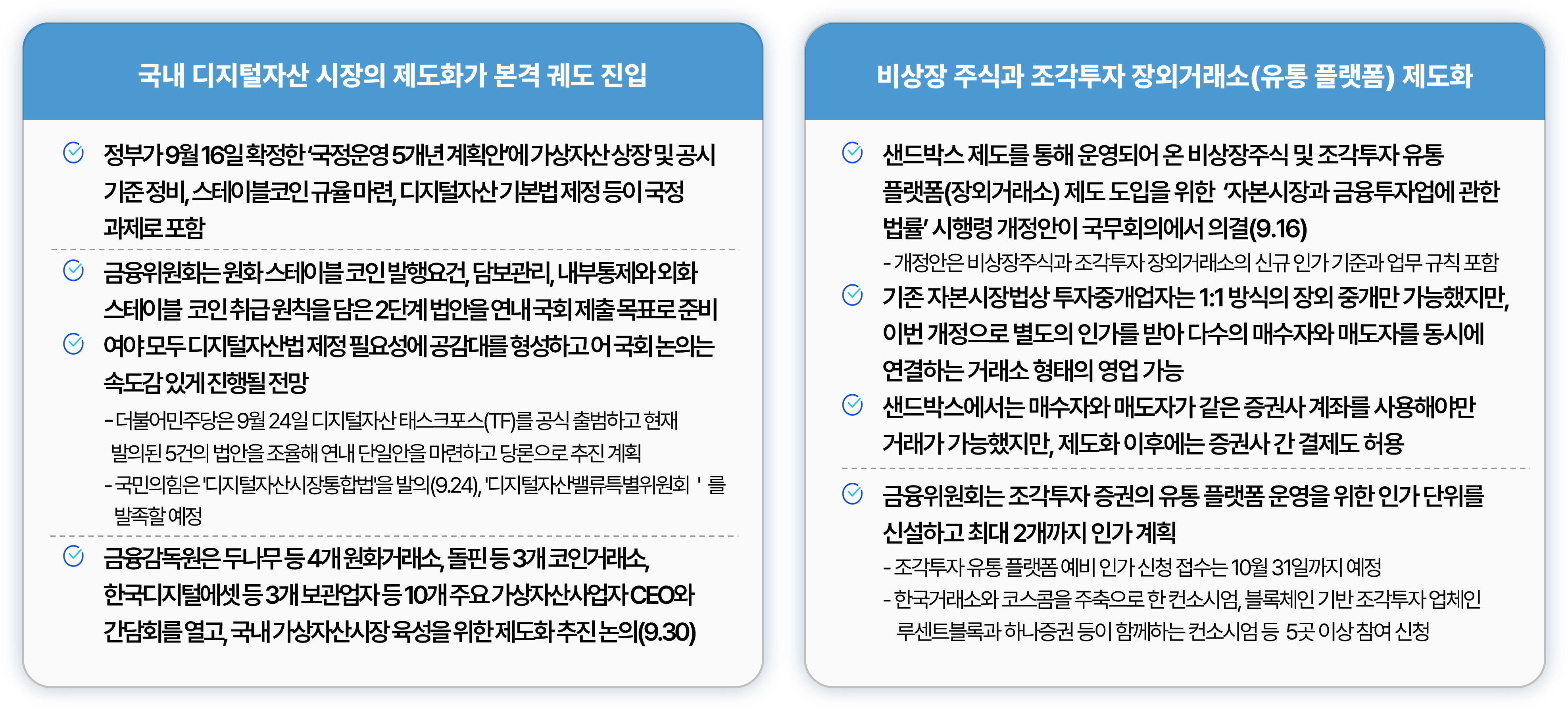- 입법 및 시행 일정: 2025년 11월 정무위 소위 통과 후, 12월 국회 본회의 통과가 유력하며, 시행령 제정 및 유예 기간을 거쳐 2026년 상반기 중 제도가 전면 시행될 예정이다.